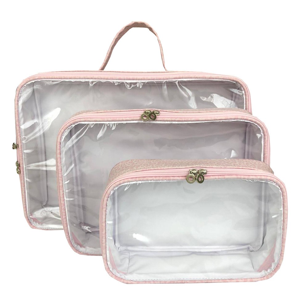 Kit Bolsa Organizadora Vinil 3 Peças Leopard Rosa