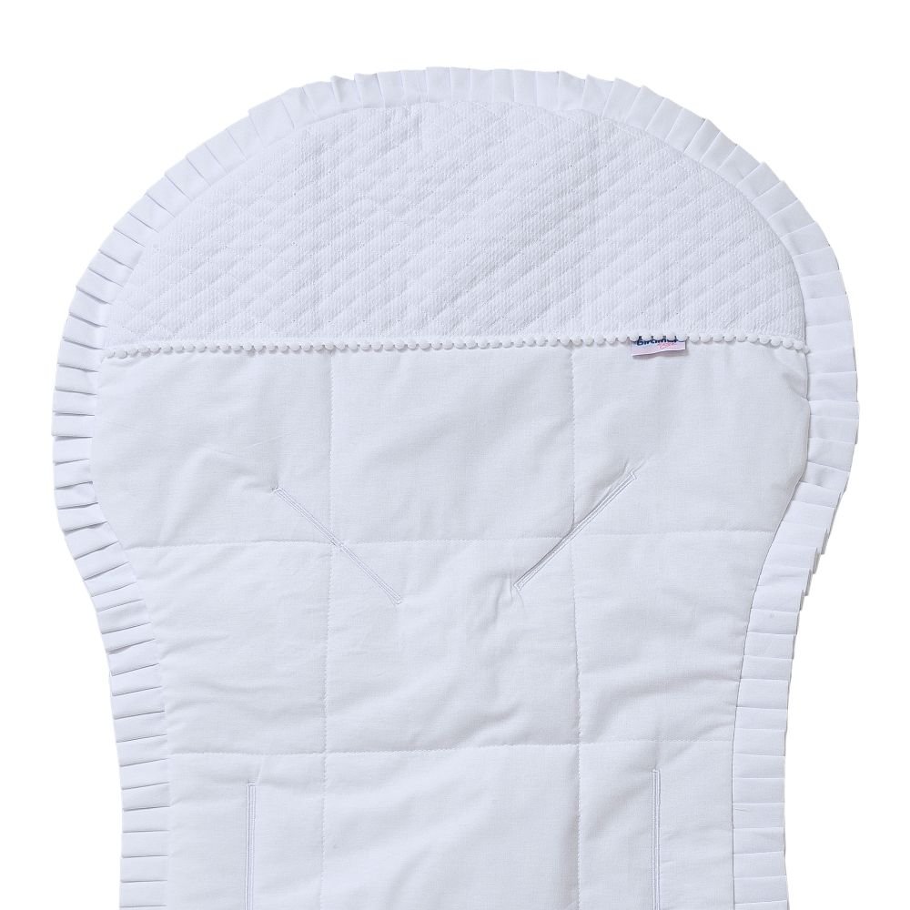 Capa para carrinho, 100% algodão, com detalhe em piquezinho matelassado, pompom e babadinhos, da Coleção Blanche Matelassado.Protege o bebê do atrito com o carrinho e possui costuras para passar o cinto de segurança que devem ser abertas pela mamãe, de acordo com seu carrinho. Fácil de limpar, é ideal para a mamãe que quer sempre trocar o visual do carrinho do seu bebê.
