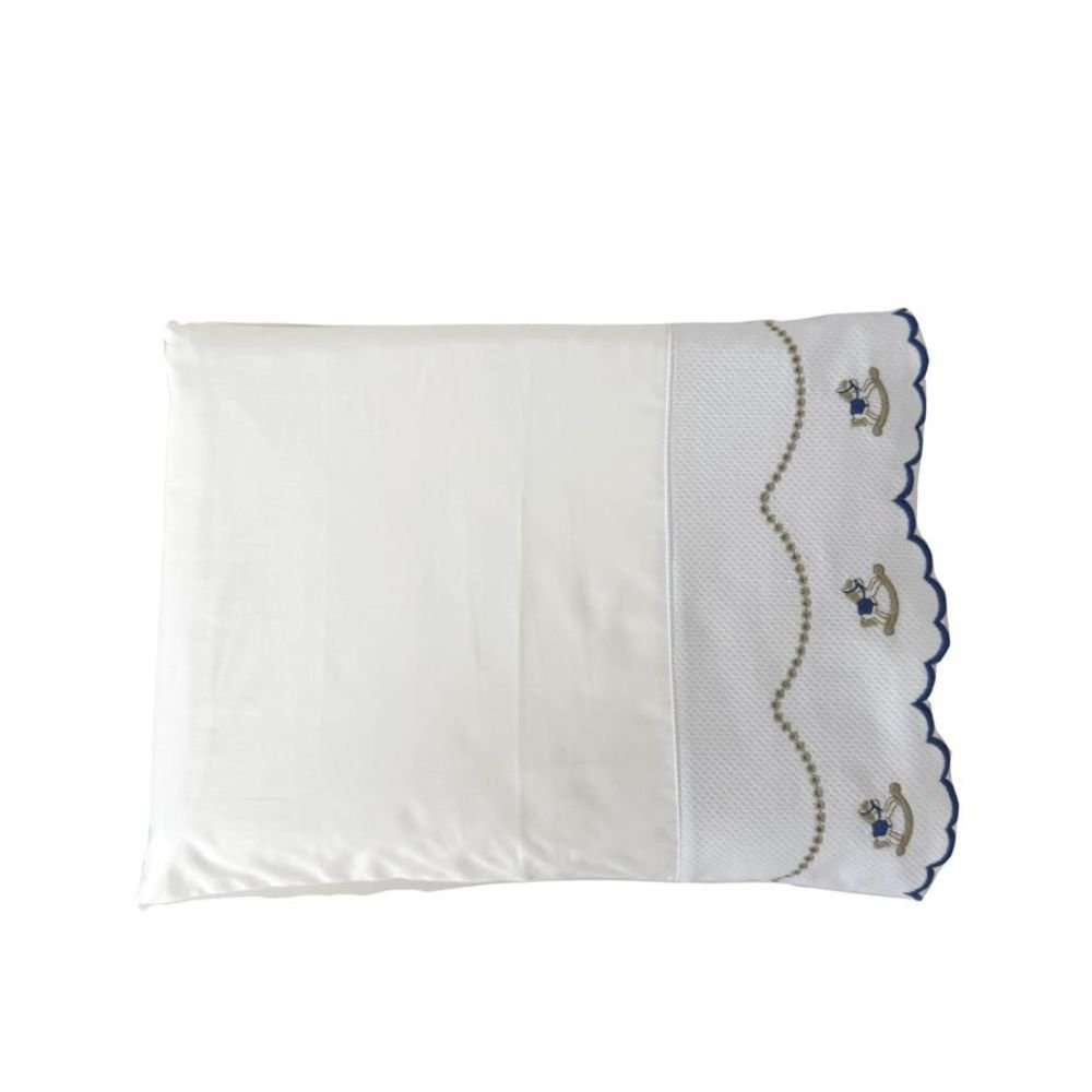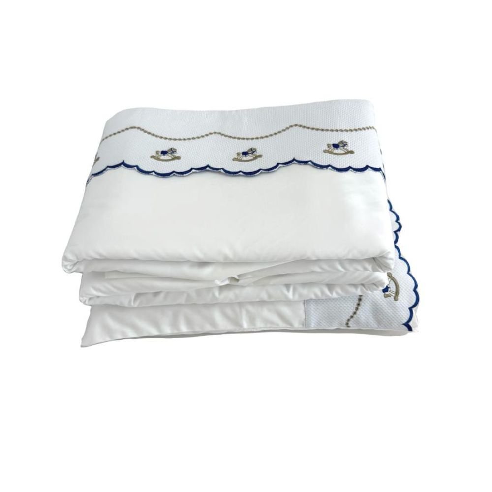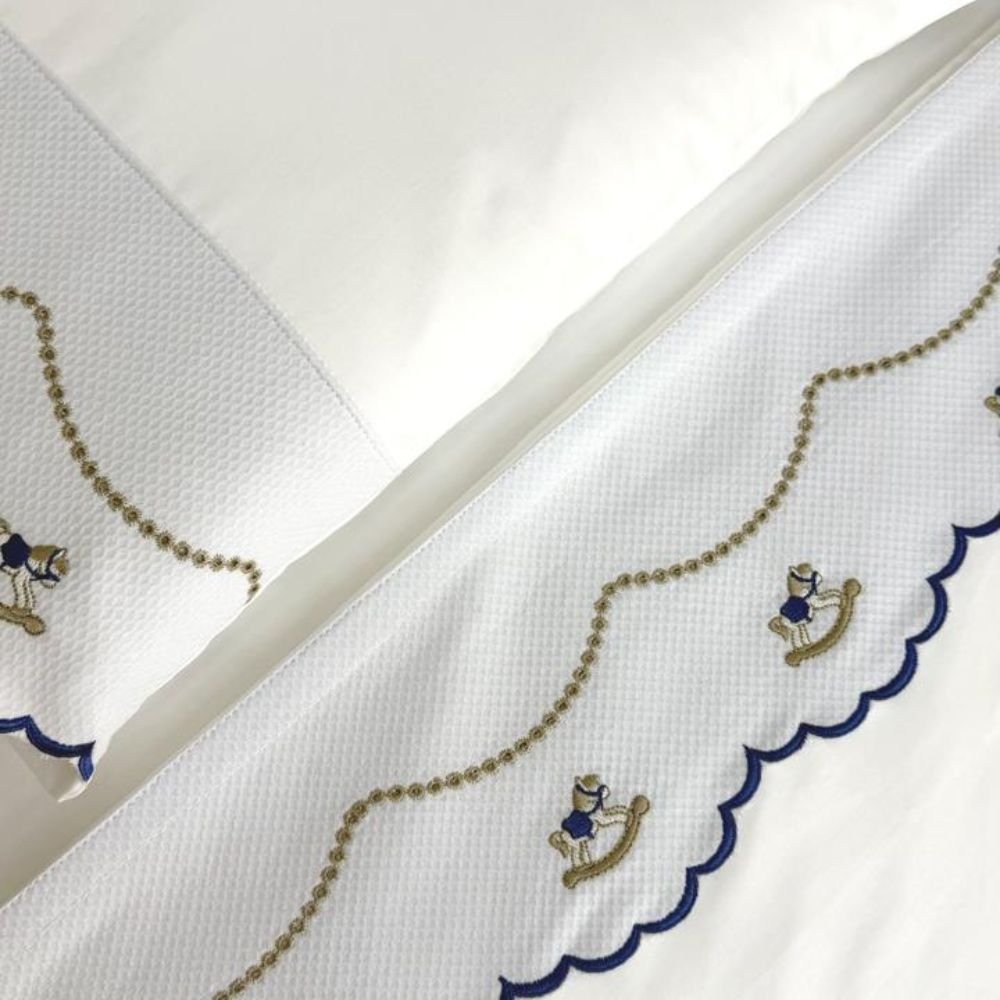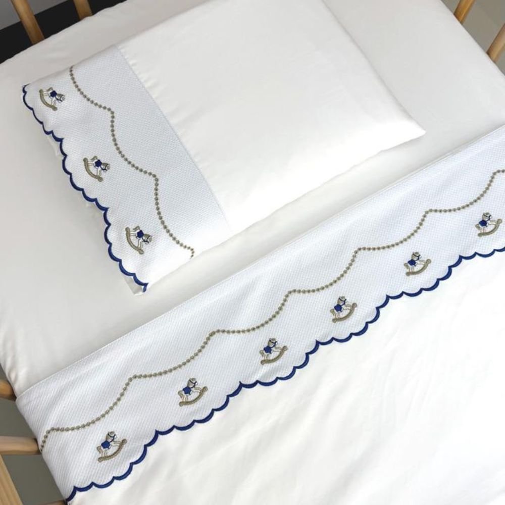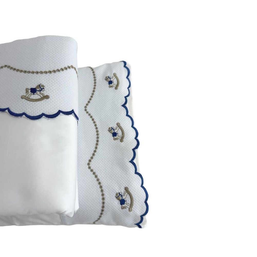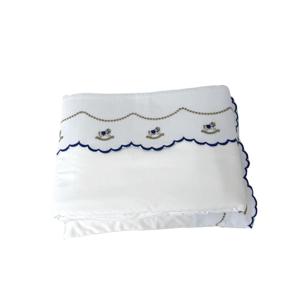 Lençol para Berço 3 Peças Percal 400 Fios Mini Cavalinho de Pau Azul
