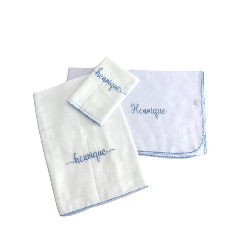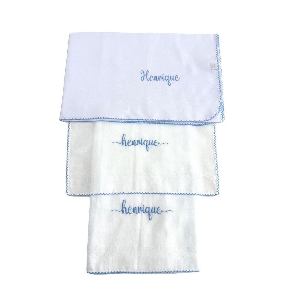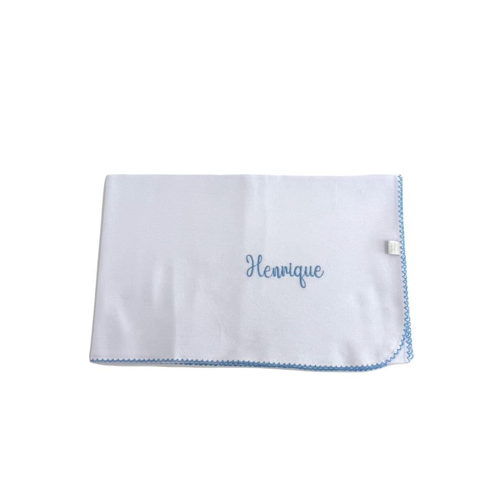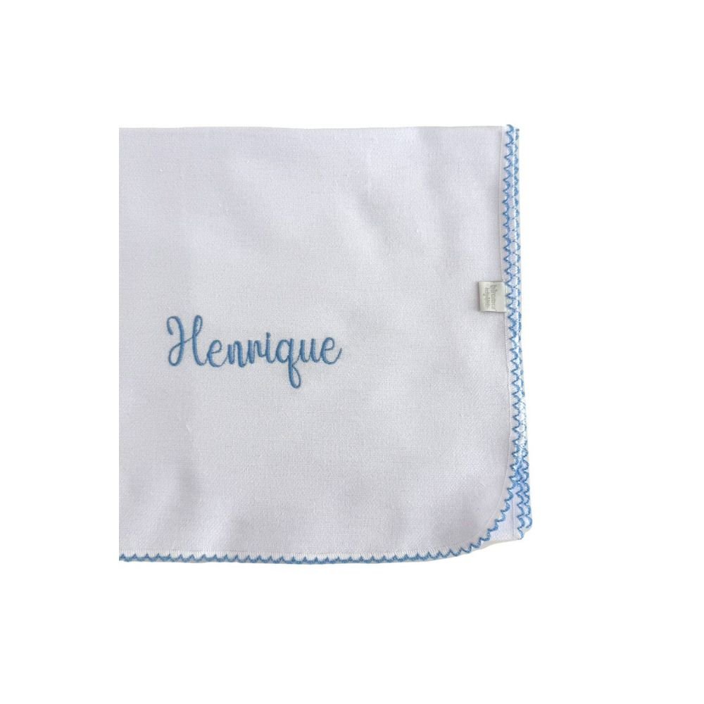 Cueiro Aflanelado para Bebê Personalizado Elisa Branco / Azul