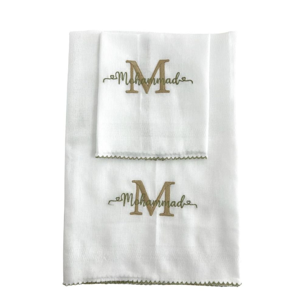 Fralda de Ombro para Bebê com Fralda Boca 100% Algodão Inicial Personalizado Bege / Verde