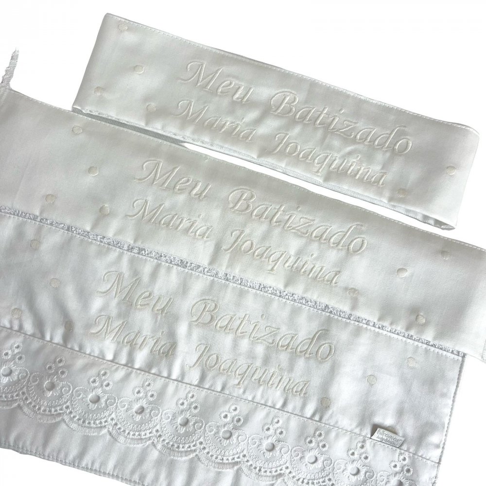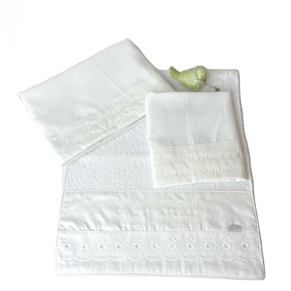 Kit Toalhinha 3 Peças Meu Batizado Personalizada Branco / Off