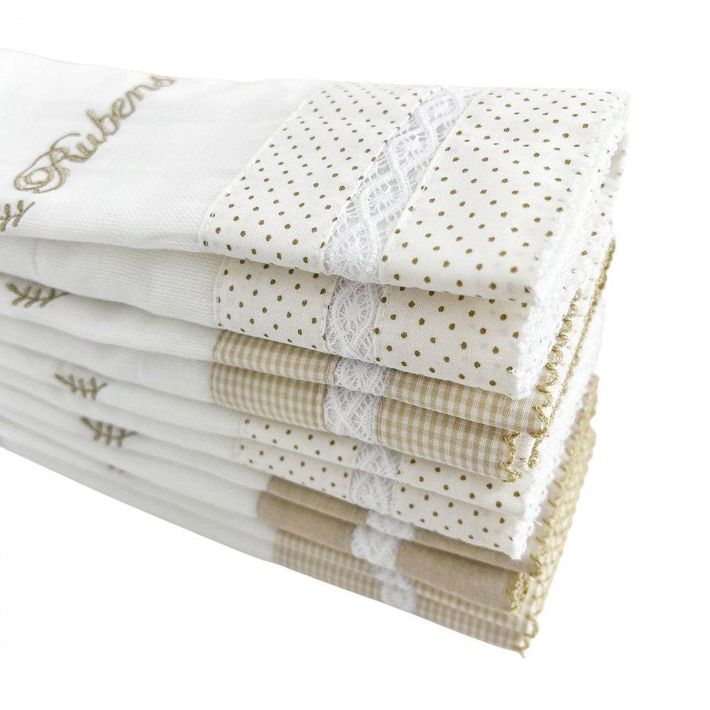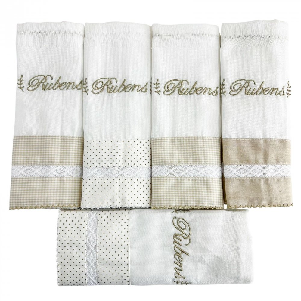 Conjunto 5 Fraldas para Bebê Cremer Personalizado La Vinci Bege