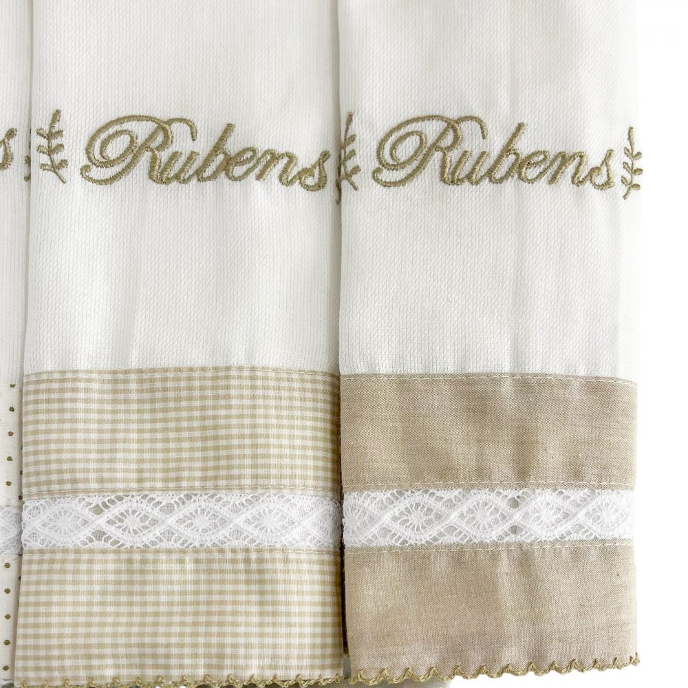 Vocês pediram e nós atendemos! Biramar Baby agora personaliza o enxoval com o nome do seu bebê! Conjunto com 5 fraldas cremer personalizado, com acabamento em picô dos 4 lados e entremeio de algodão. Que super novidade!! Personalização válida somente para a Coleção La Vinci. Lisas com detalhes em estampa da La Vinci Bege. Limpa, seca e protege o seu bebê do sol. Macias e super úteis.