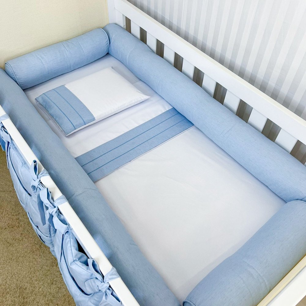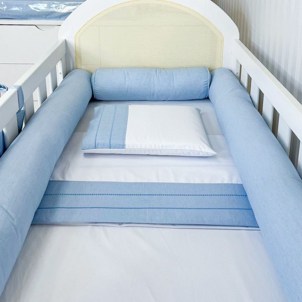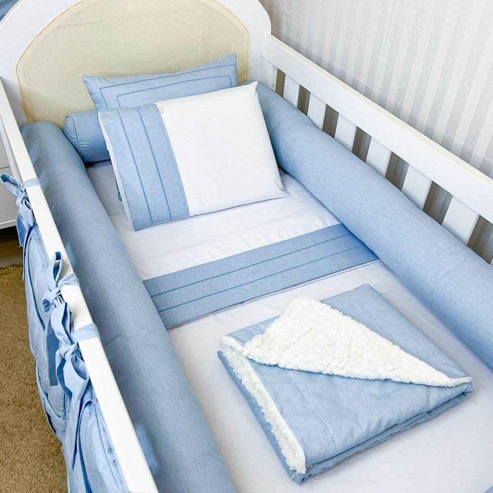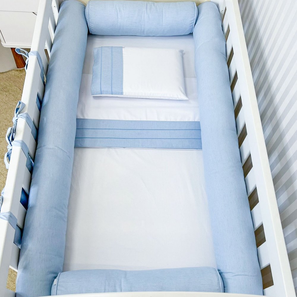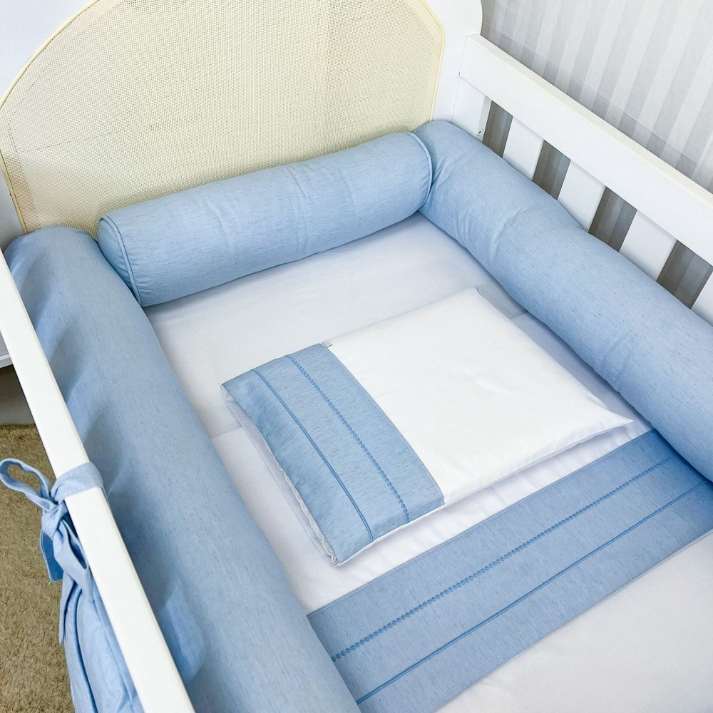 Kit de Berço Rolinho 4 Peças Linho Azul