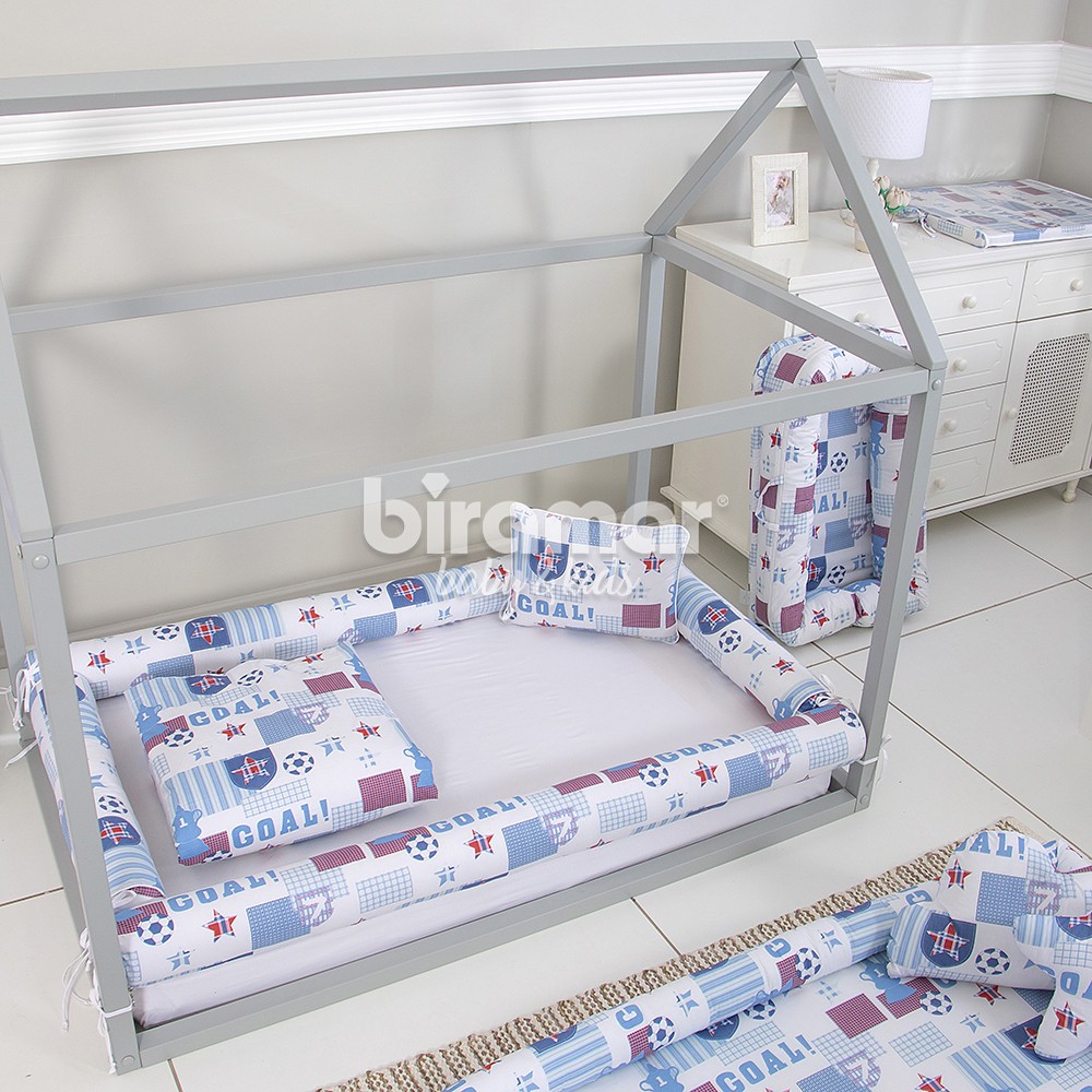 Kit Montessoriano Mini Cama Rolinho 4 Peças Goal Azul (Colchão 1,50 x 0,70)