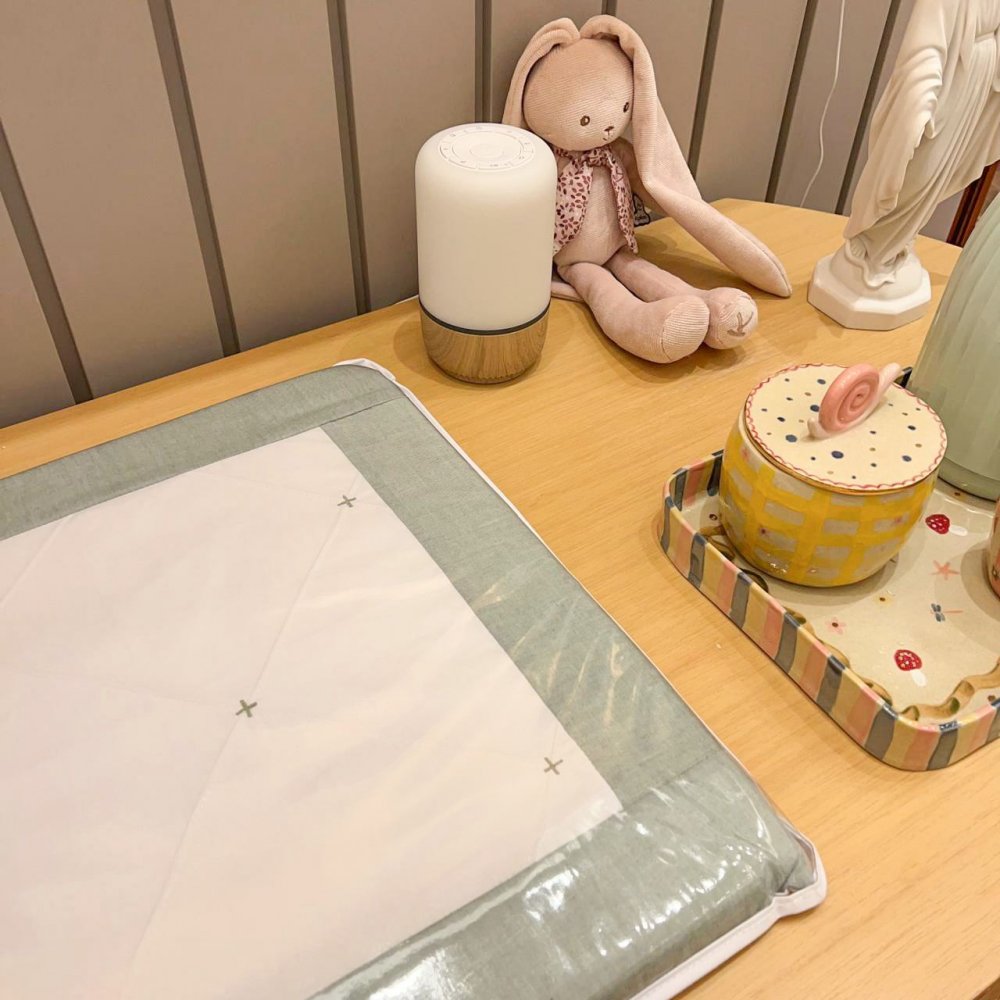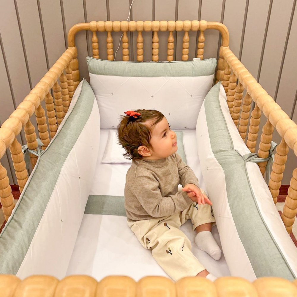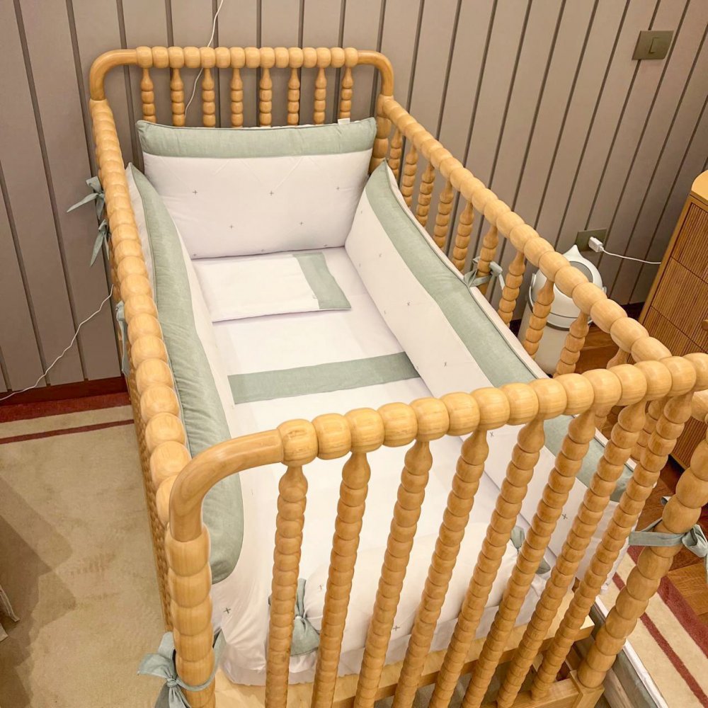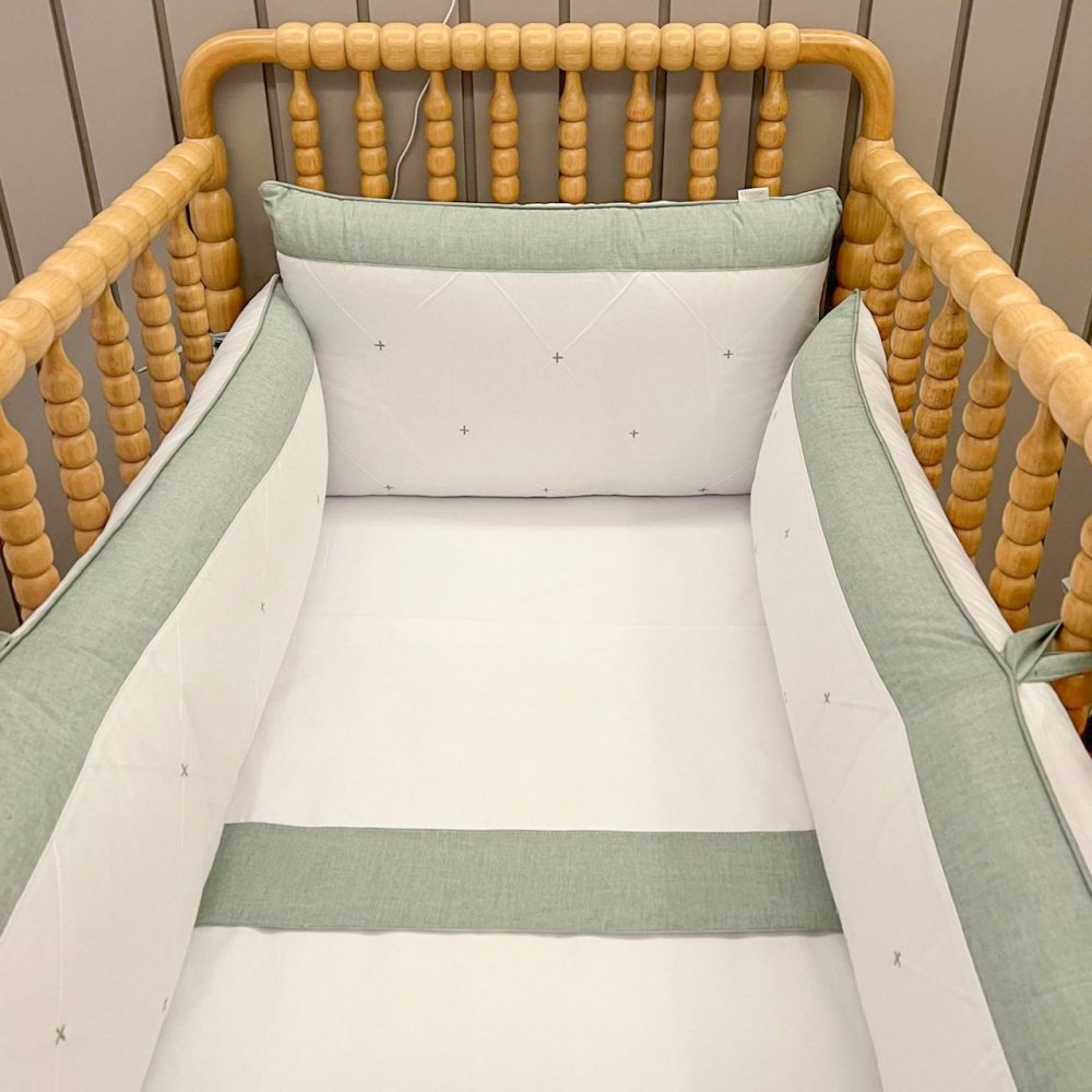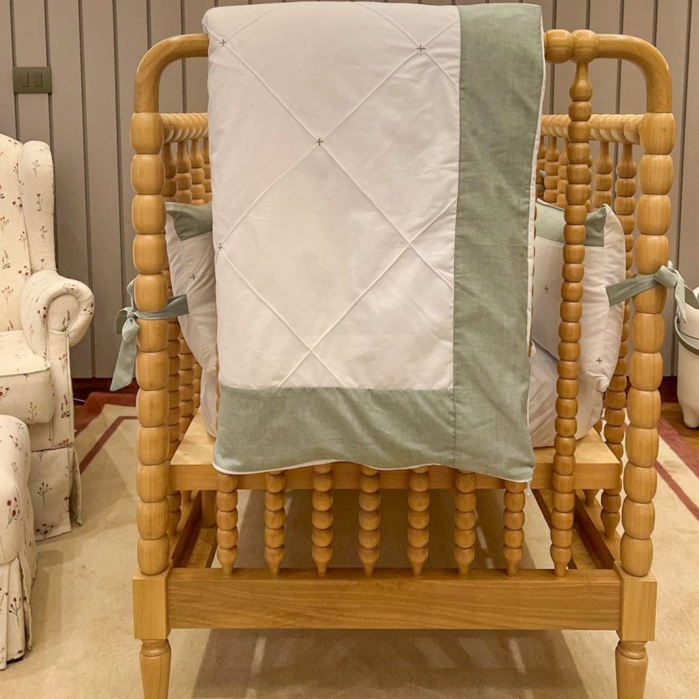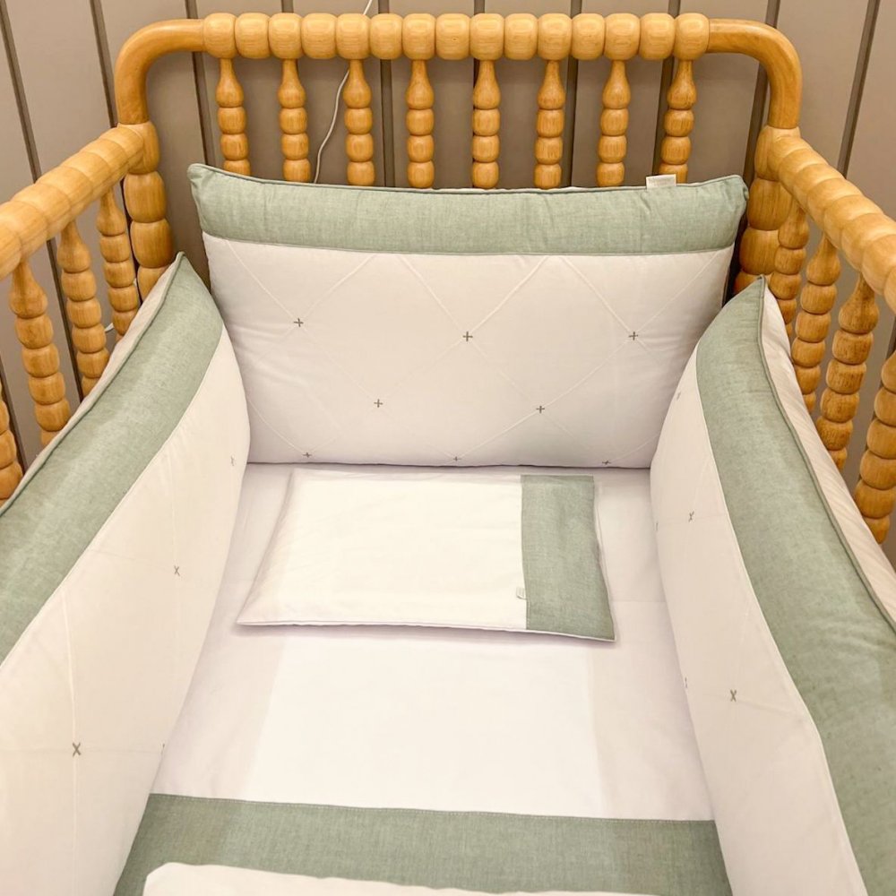 Kit Enxoval de Berço Glamour Chambray Mesclado Verde 9 Peças