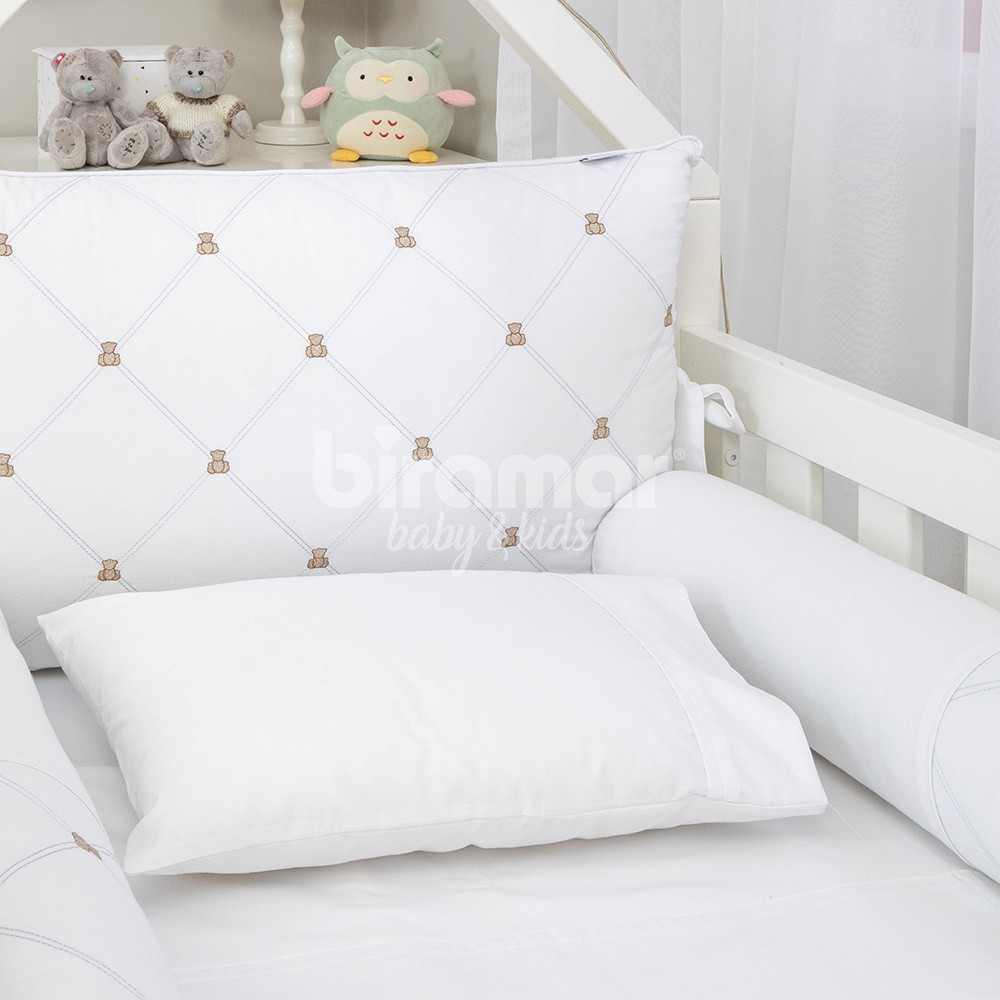 Enxoval de berço 10 peças da Coleção Theodore Rolos Branco. Em percal 100% algodão é macio e suave. A história do ursinho de pelúcia começou em 1902, quando o presidente dos E.U.A. Theodore Roosevelt foi convidado para participar de uma caçada e durante a caçada, um urso foi capturado. Os participantes pediram ao presidente que sacrificasse o animal e o exibisse como troféu. Roosevelt recusou-se a matá-lo e a história de sua bondade espalhou-se pelo país. Mais tarde, Morris Michtom, um imigrante russo vendedor de brinquedos, ficou sabendo da história e iniciou a fabricação de ursinhos de pelúcia. E em homenagem aos lindos ursinhos, a Coleção Theodore Rolos Branco traz detalhes de mini ursinhos bordados e com coroa para que seu bebê se sinta um verdadeiro príncipe. 10 peças pra deixarem o quartinho do seu bebê um charme.
