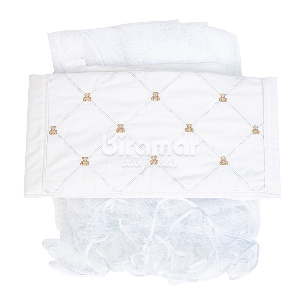 Kit Enxoval de Berço Theodore Rolos Branco 10 Peças com Mosquiteiro