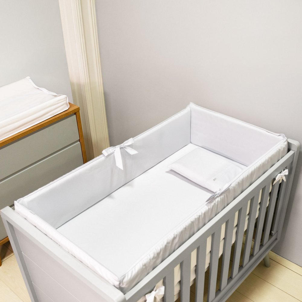 O Kit Protetor de Berço 4 peças em Piquet Branco, 100% algodão, proporciona maciez e suavidade para o seu bebê. Com os protetores confeccionados com refis de espuma Antissufocante, a segurança é prioridade, uma vez que os poros da espuma permitem a circulação do ar durante o sono do bebê. Este kit é ideal para as mamães que desejam um enxoval clássico e todo branco, que combina perfeitamente com qualquer decoração, seja com cores vibrantes ou papéis de parede estampados. Além de fornecer proteção essencial para o seu bebê, o Kit Protetor de Berço também adiciona um charme especial ao quartinho. Detalhes que fazem a diferença incluem o zíper nas capas de todas as laterais do kit, permitindo a retirada das espumas para facilitar a higienização e a conservação dos protetores. Os nossos protetores são projetados para berços padrão americano (1,30m x 70cm) e a espuma Antissufocante possui poros/furos que garantem a circulação adequada do ar durante o sono do bebê. Invista no conforto, na segurança e no estilo com o Kit Protetor de Berço 4 peças em Piquet Branco. Este kit oferece uma combinação perfeita de funcionalidade e estética para criar um ambiente seguro e encantador para o seu bebê.