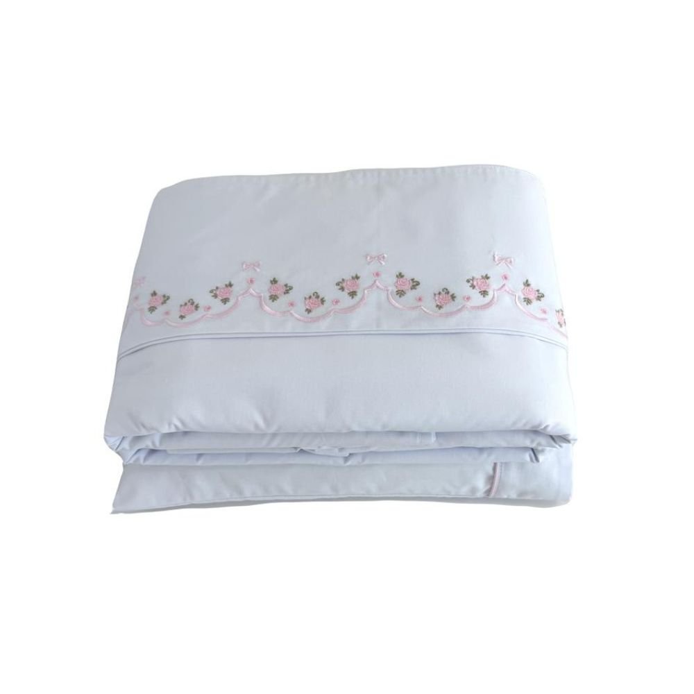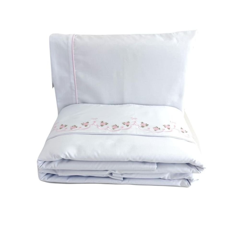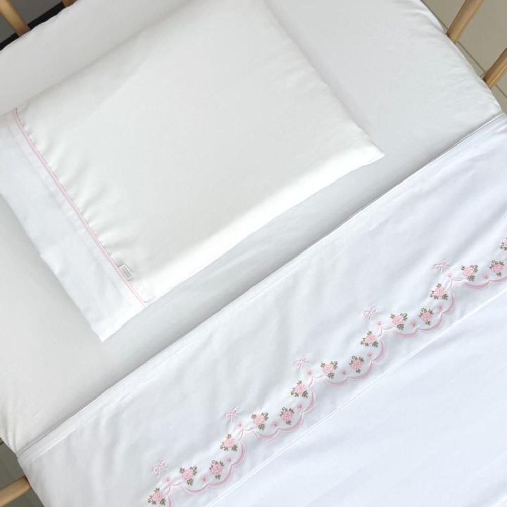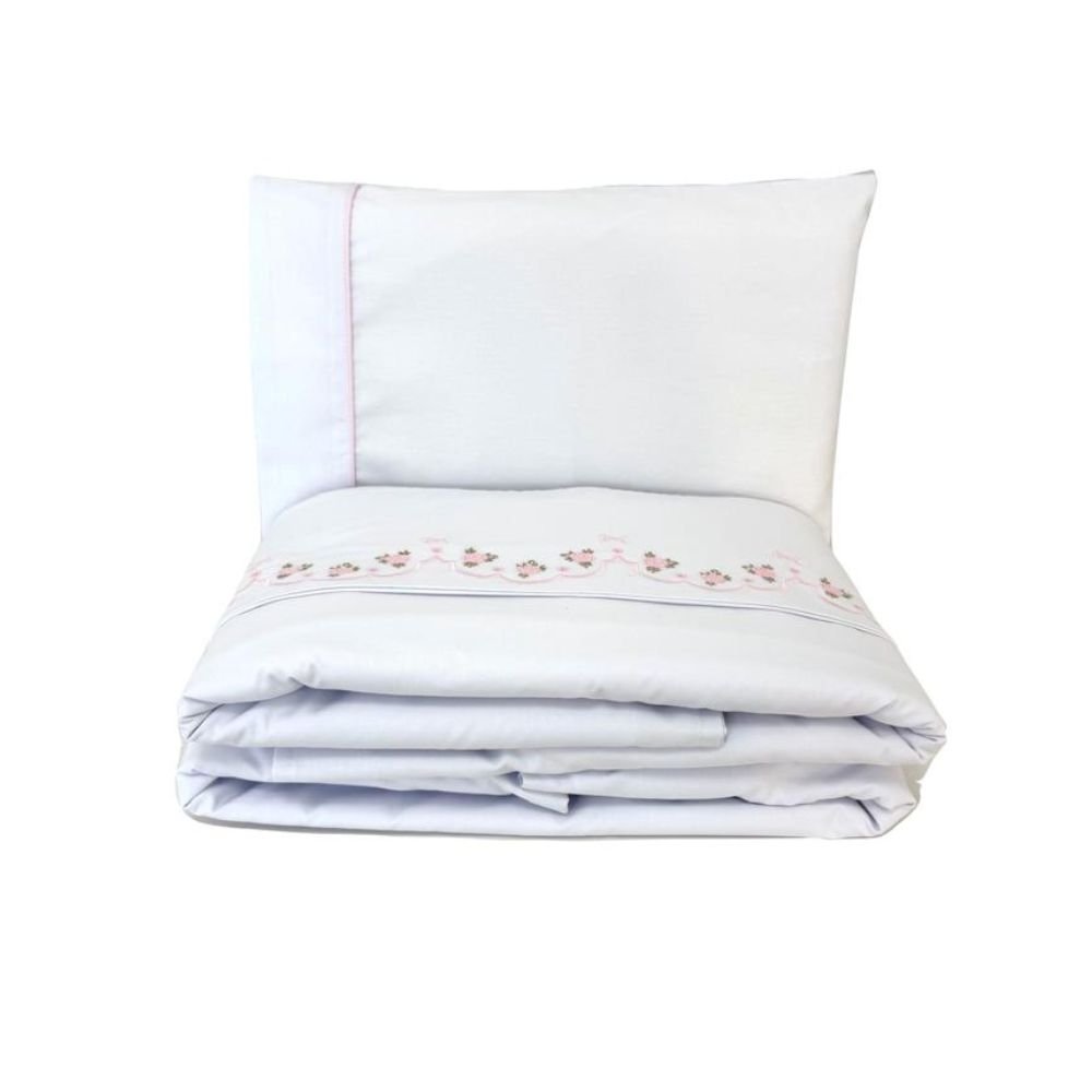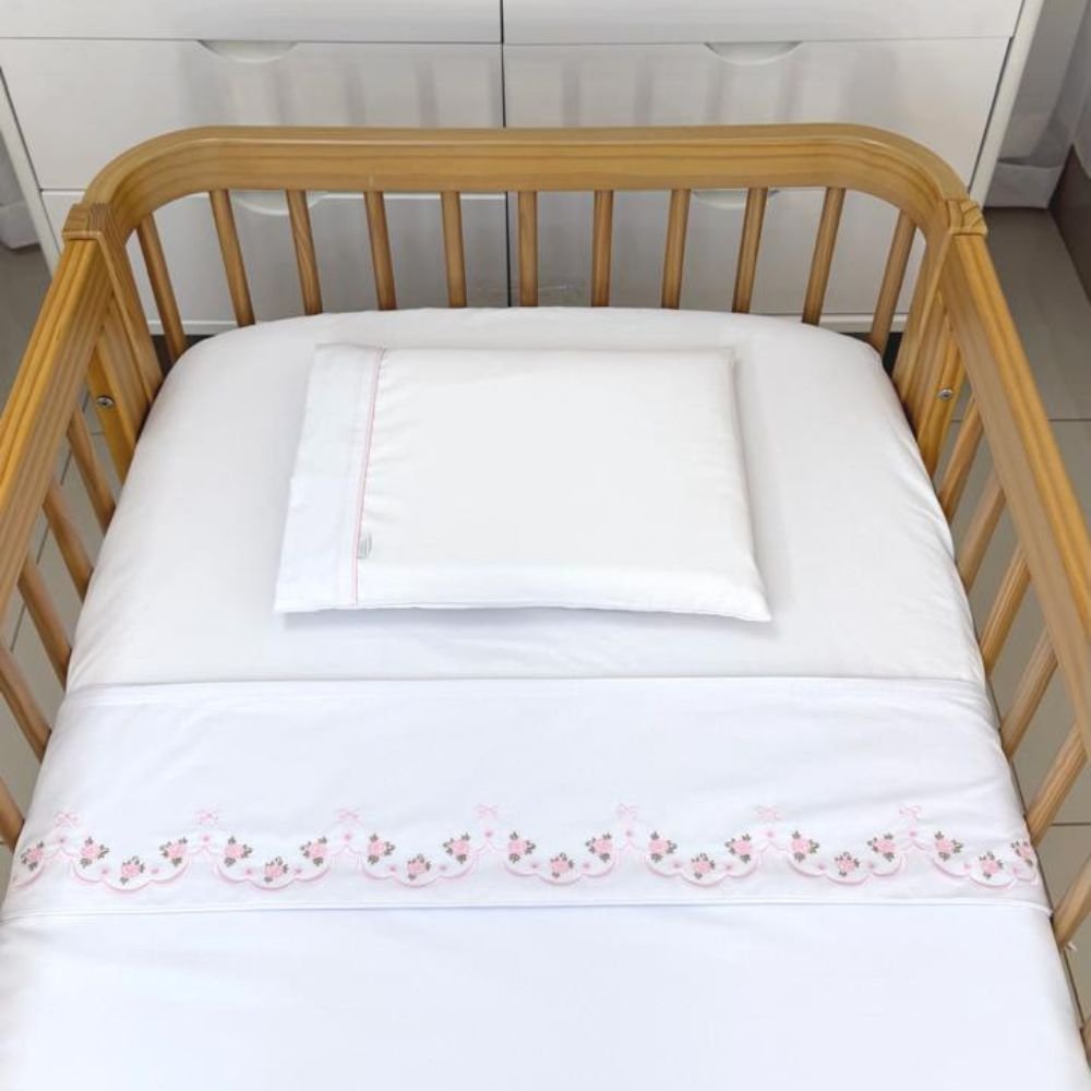 Jogo de Lençol para Berço 3 peças Percal 180 Fios 100% Algodão Alice Branco / Rosa