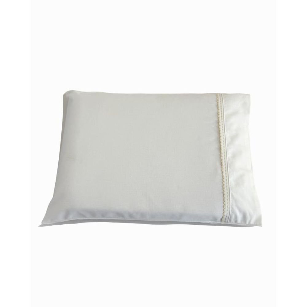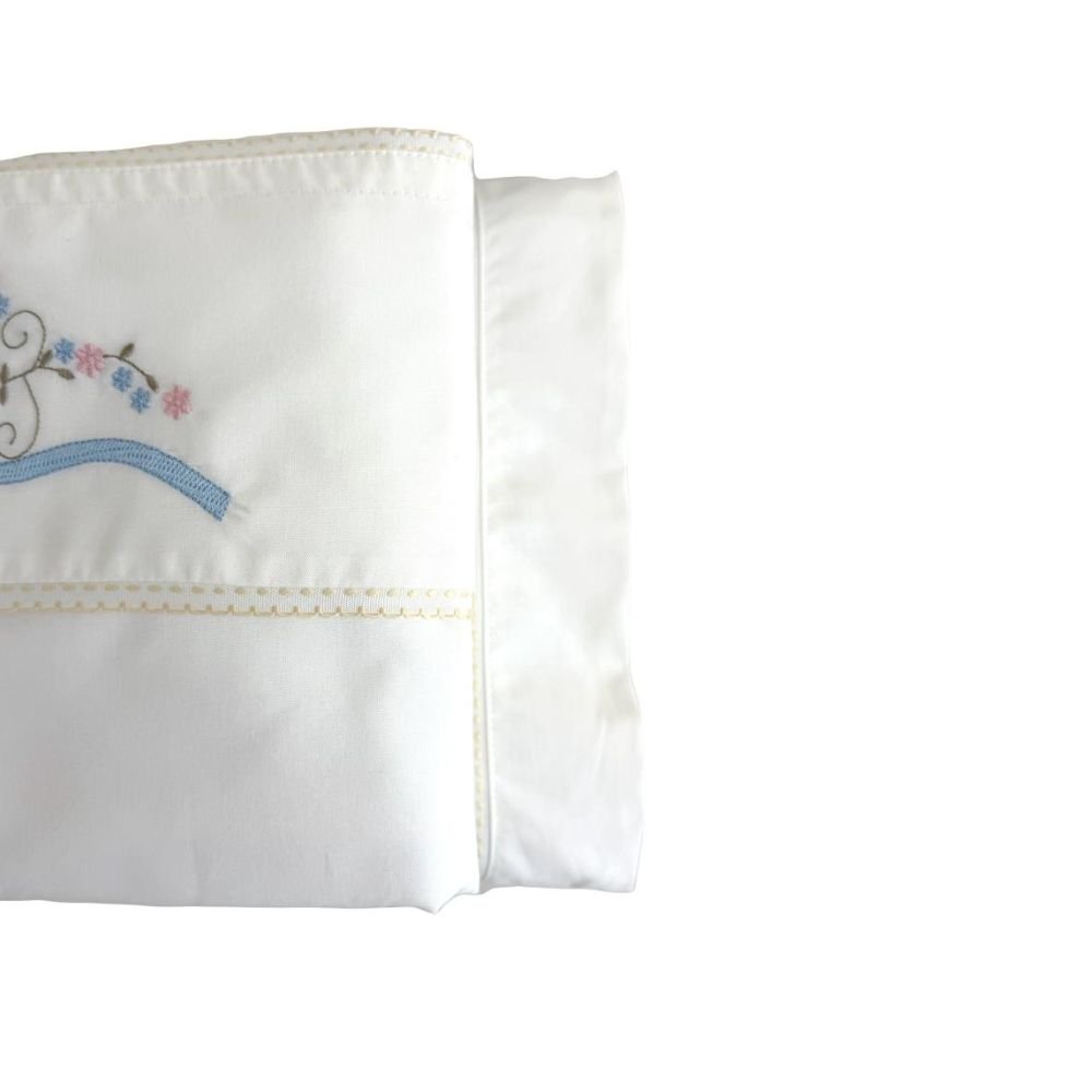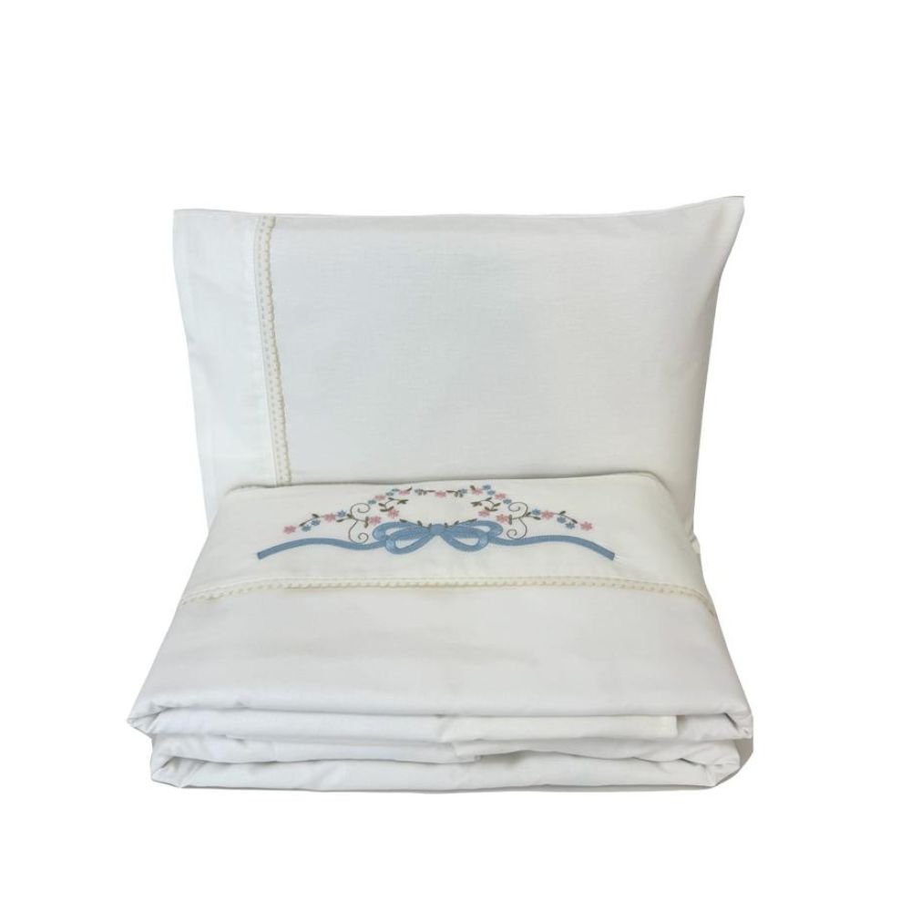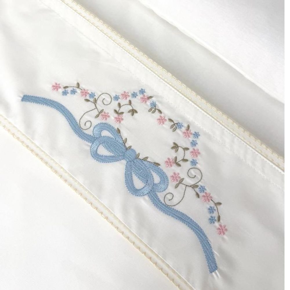 Jogo de Lençol para Berço 3 peças Percal 180 Fios 100% Algodão Marfim Bordado Laço Azul