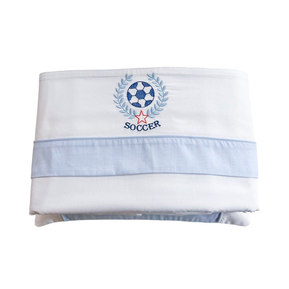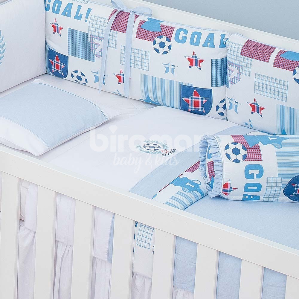 Kit Enxoval de Berço Goal Branco/Azul 7 peças