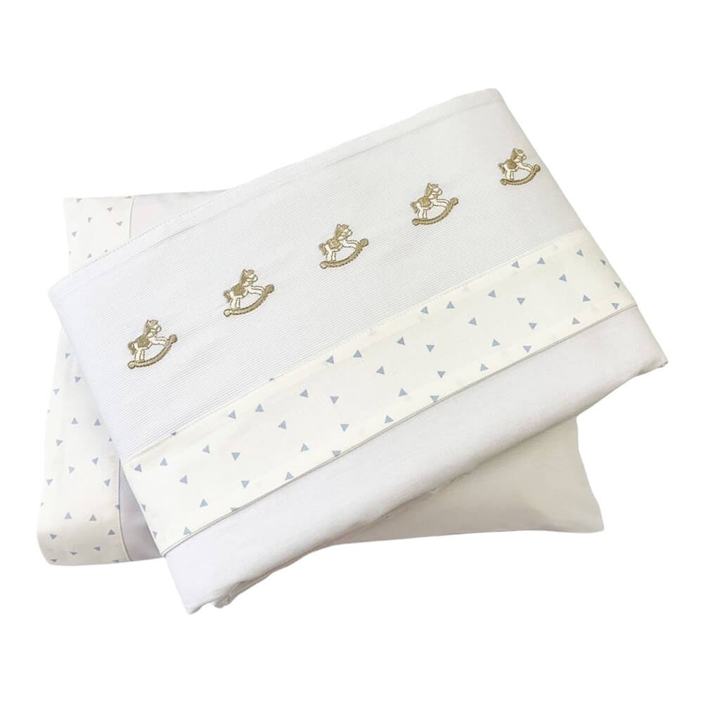 Lençol para Berço 3 peças Lolli Cavalinho Azul Percal