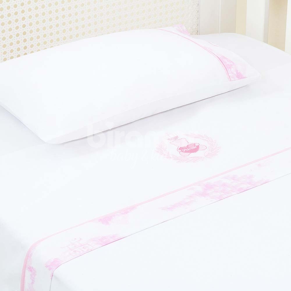 Lençol para Berço 3 peças Lolli Princess Rosa Percal