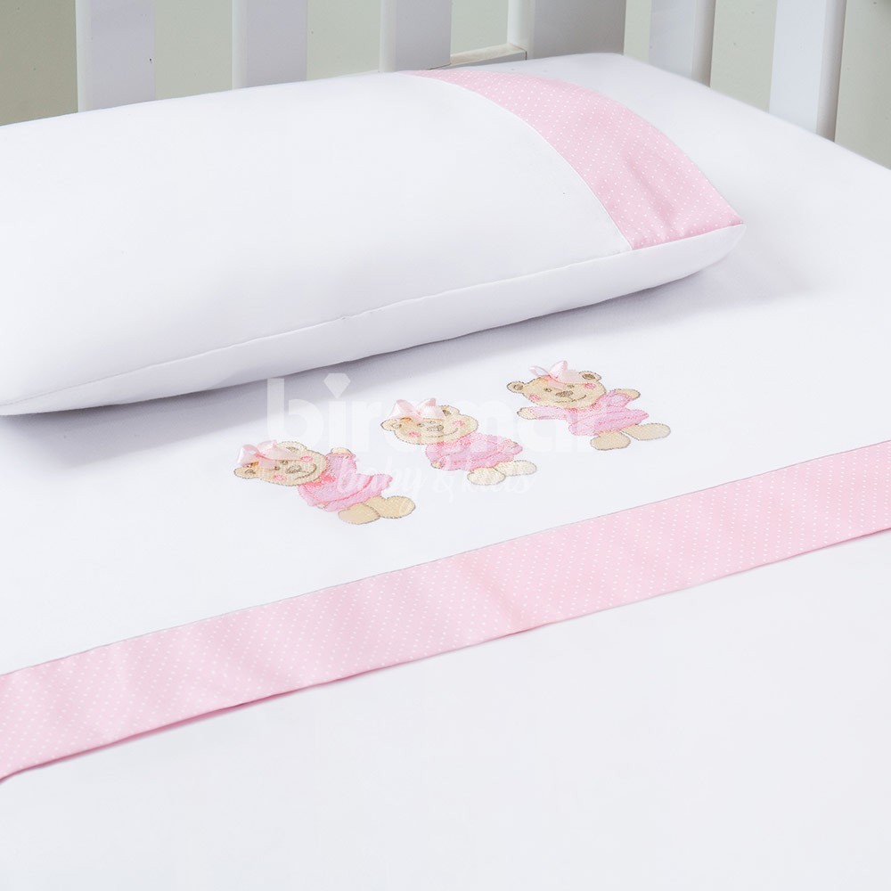 Lençol para Berço 3 peças Lolli Ursinhas Rosa Percal
