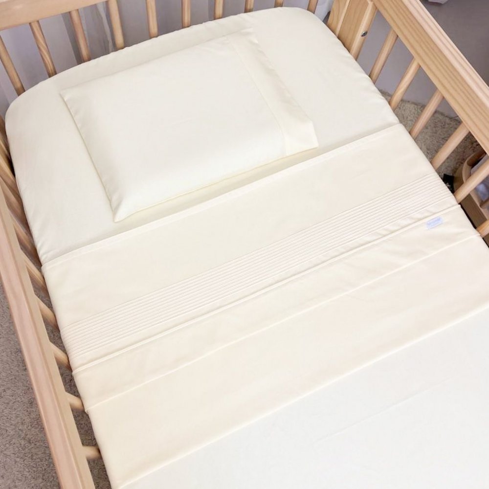 Lençol para Berço 3 peças Percal Amarelo. Lençol superior, lençol inferior e fronha em percal 100% algodão. Toque suave e macio, sendo o lençol de baixo com elástico, proporcionando facilidade na colocação no colchão. Detalhes em nervuras.