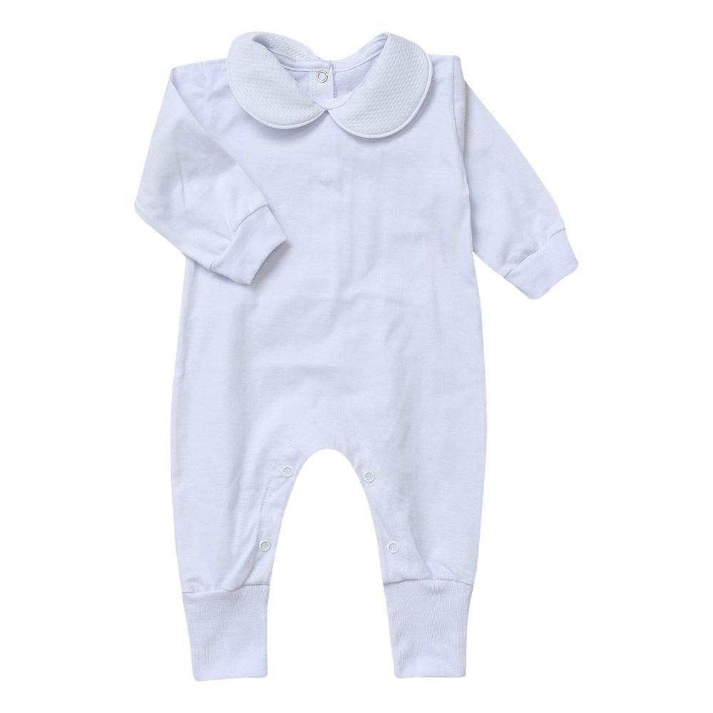 Macacão 100% algodão, malha penteada Fio 30/1, com golinha em matelassado, da Coleção Blanche Matelassado. Clássico e confortável para o seu bebê.