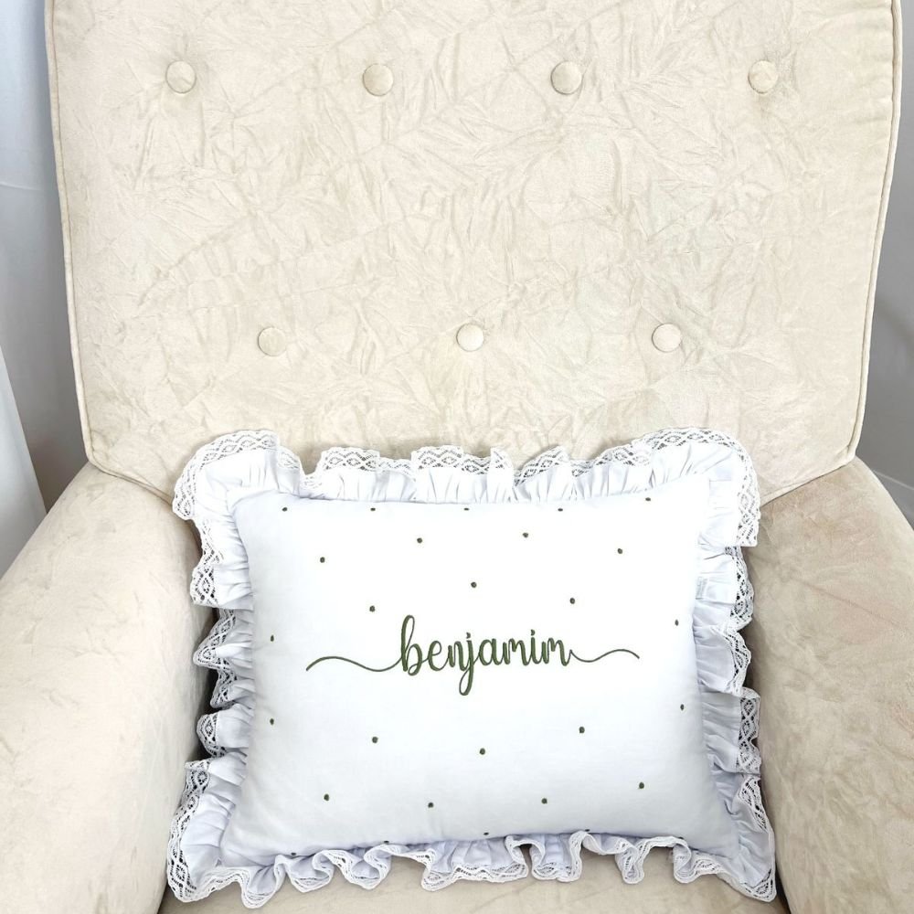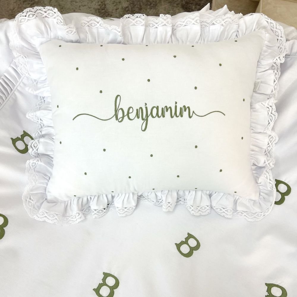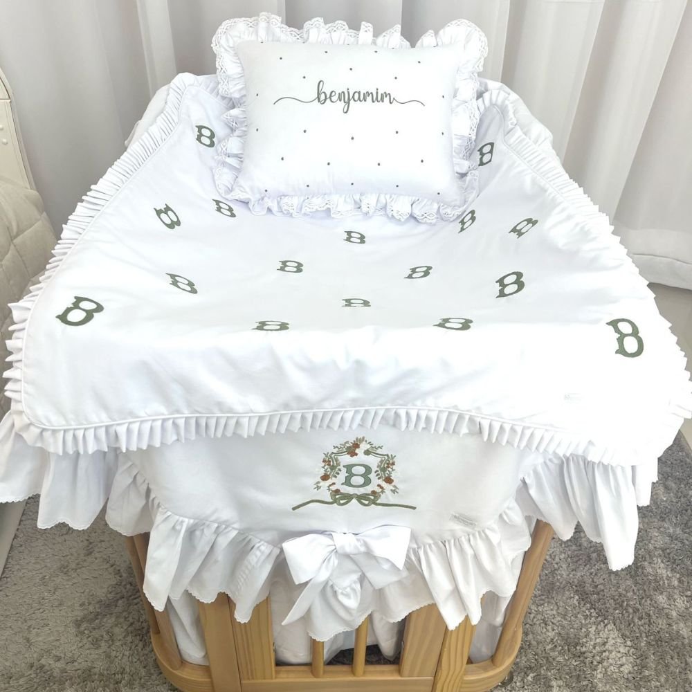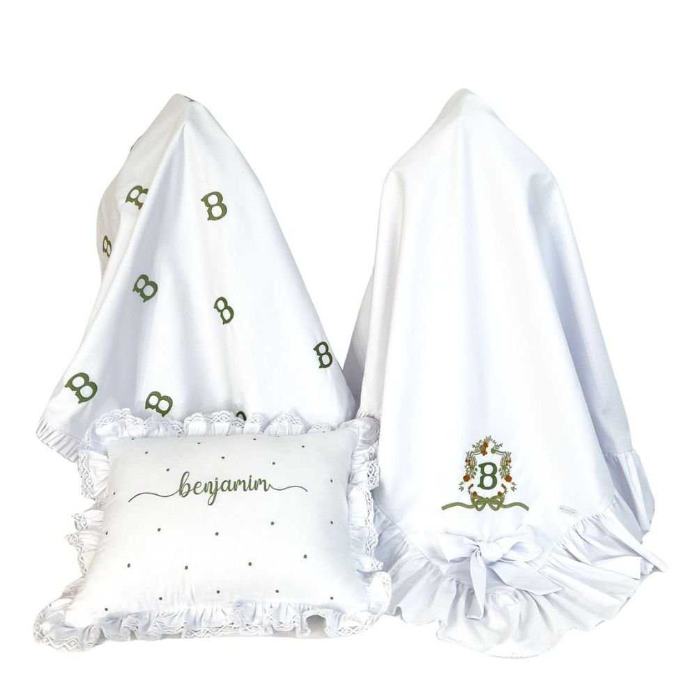 Kit Maternidade 3 Peças Percal 200 Fios Acetinado Personalizado Elisa Branco / Verde