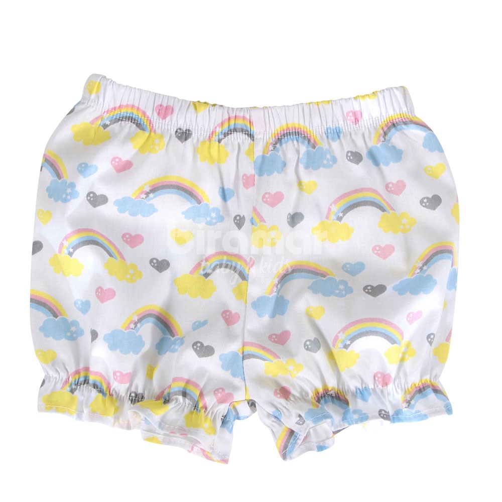 Conjunto batinha curto 2 peças Rainbow Colorido, 100% algodão. Batinha e short, em linda estampa de arco-íris. Clássico e confortável para o seu bebê.